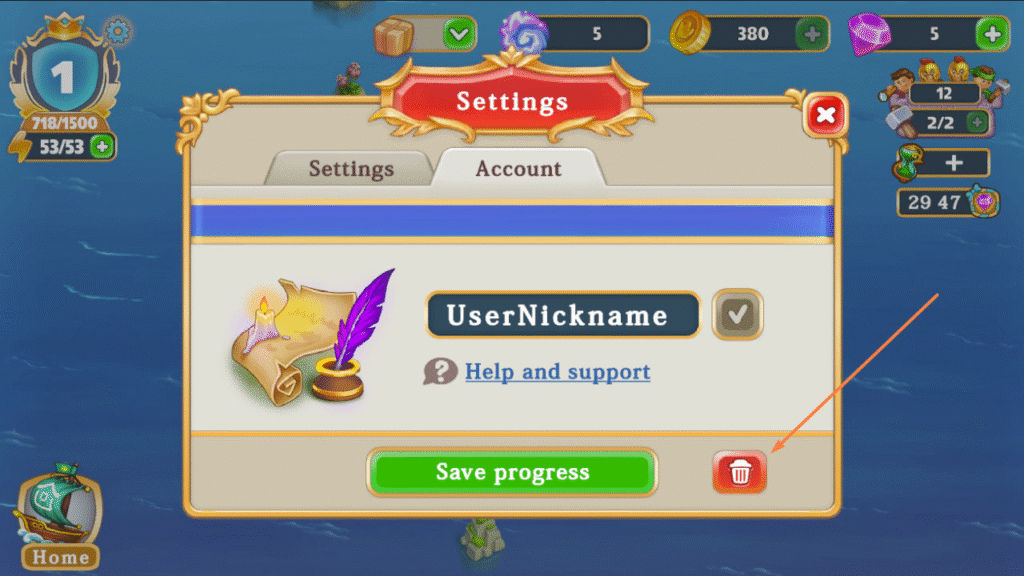 4. Player needs to click on the red button with the trash can icon to delete the account: