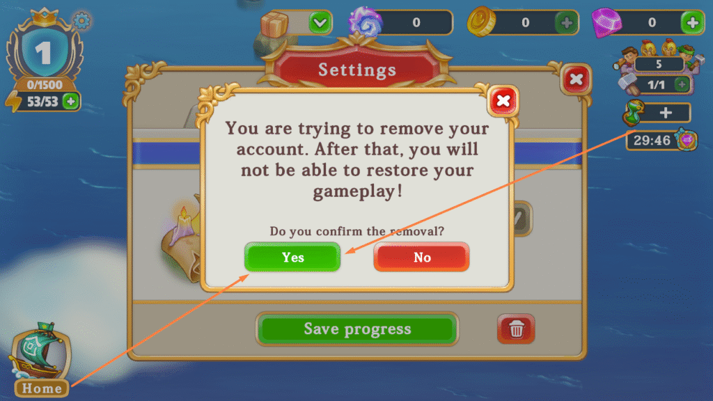 5. Before deleting, player needs to confirm his action through a confirmation tab: